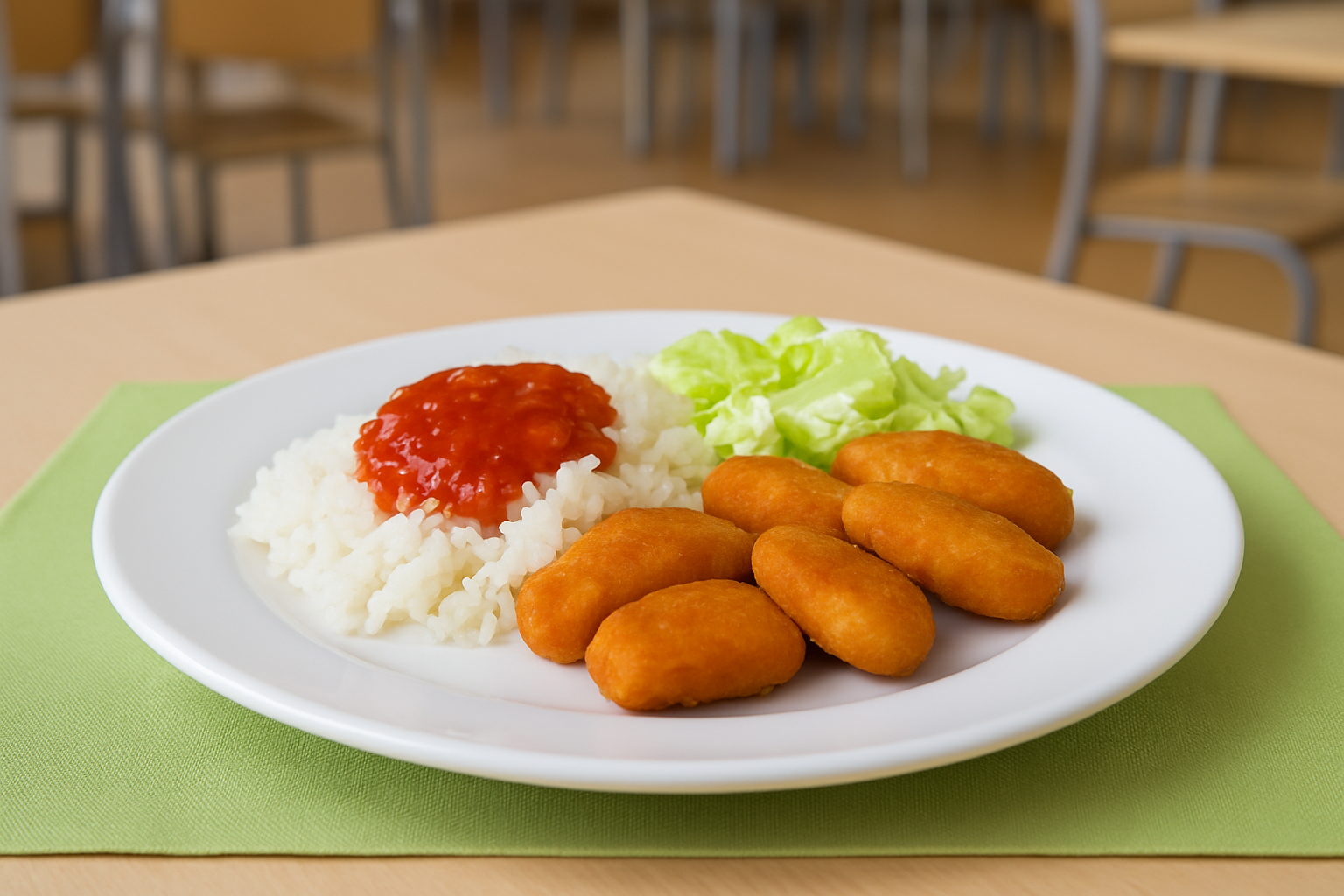 Kinderwunsch: Chicken Nuggets mit Pommes, süß/saurer Soße und gem. Salat x