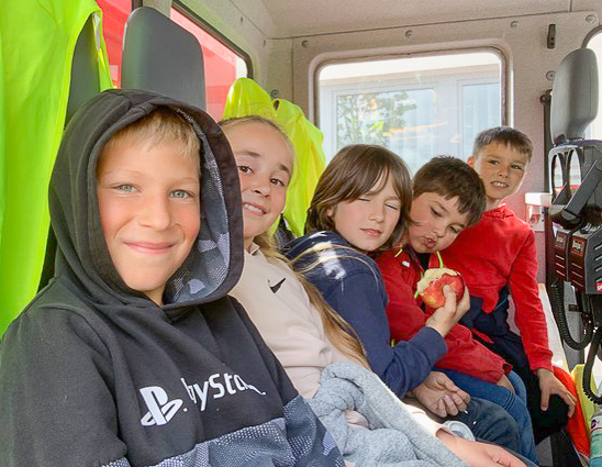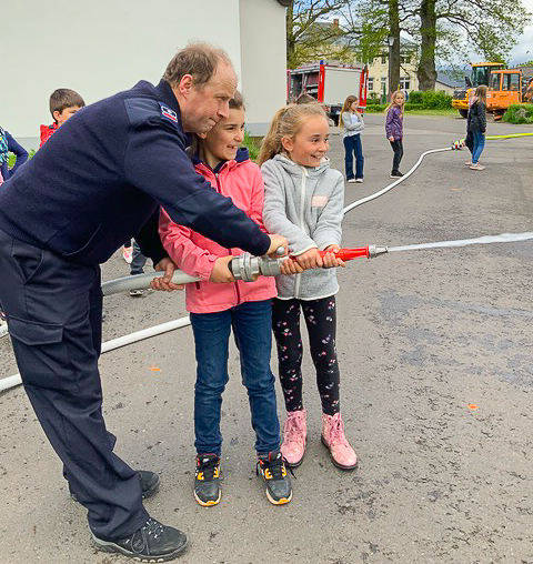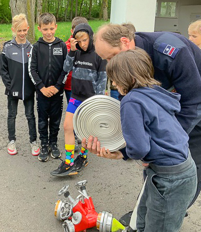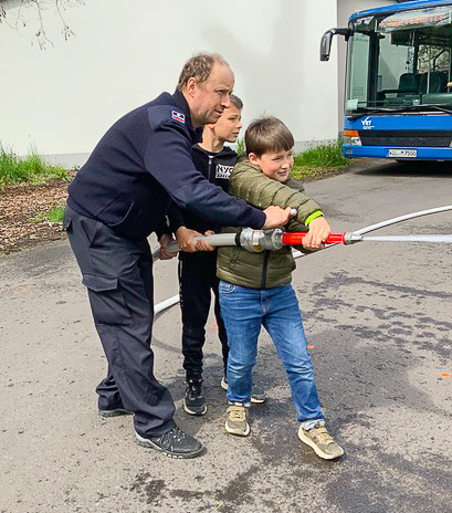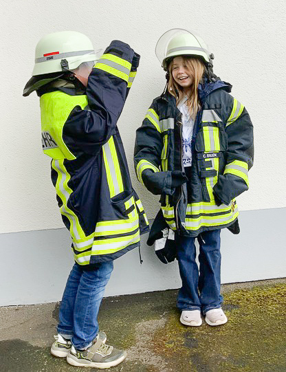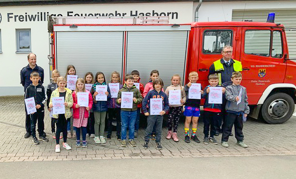 Am 10. Mai kamen Herr Rauen und Herr Krischel, die Wehrführer der freiwilligen Feierwehren Hasborn und Plein, zu uns in die Schule und unterrichteten uns über Brandschutz. Wir lernten, wie wir uns im Brandfall verhalten.